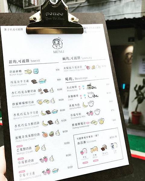 日式可麗餅口味以甜味為主,也有鹹的可以選擇及季節限定口味,